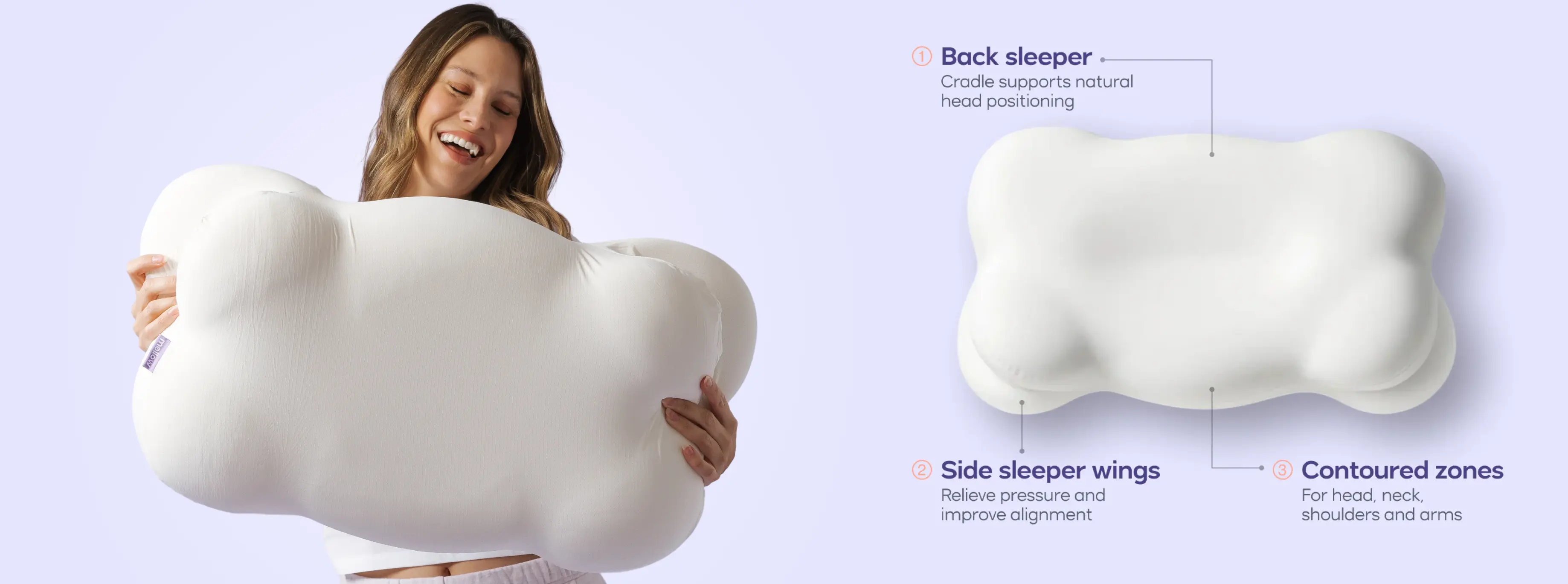 There are different sections for your head, neck, and shoulders. The center cradles your head. The contoured part supports your neck. The side wings give your shoulders space if you're a side sleeper (no more dead arm!).