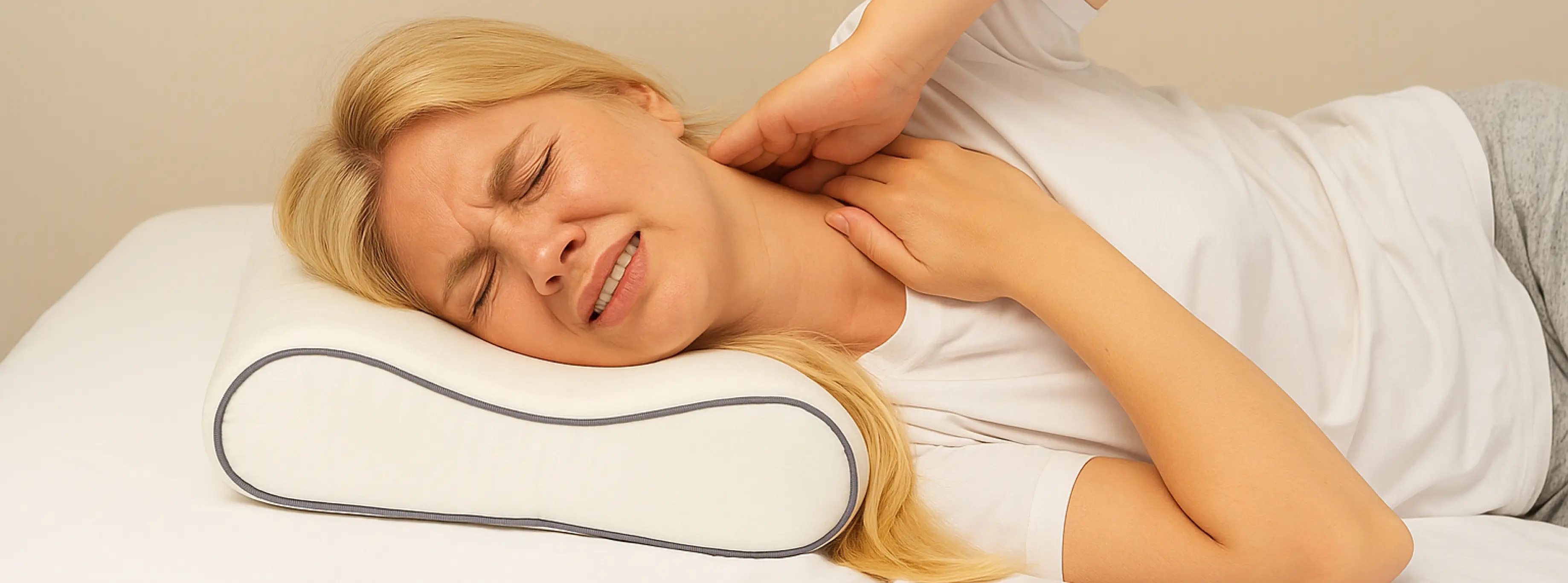 Alarm goes off, and the neck pain hits immediately. Not the “slept weird” kind that goes away after some coffee. The kind that starts the second you turn your head and sends a sharp ache down your neck. Some mornings it’s just stiff, but others… I know I’m in for a headache by noon.